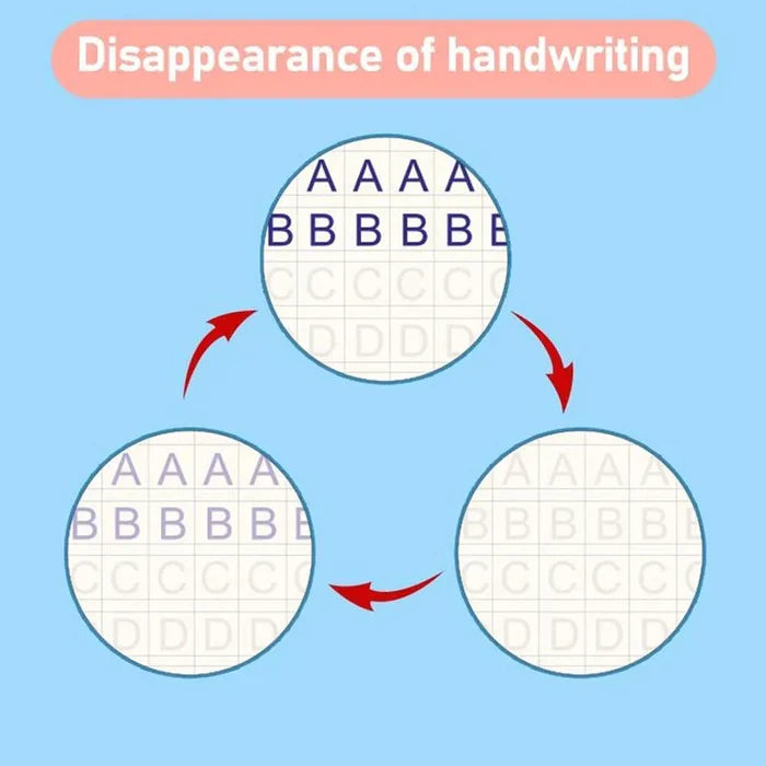 The ink will automatically disappear and the Copybook can be reused with the use of our Magic Pen.